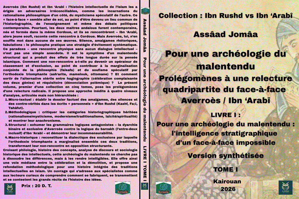 Averroès (Ibn Rushd) et Ibn ‘Arabī : l’histoire intellectuelle de l’Islam les a érigés en adversaires irréconciliables, comme les incarnations du rationalisme philosophique d’un côté, du mysticisme spéculatif de l’autre. Ce « face-à‑face » semble aller de soi, au point d’être devenu un lieu commun de l’historiographie, de l’enseignement et même des débats politiques contemporains. Pourtant, les deux maîtres andalous furent contemporains, nés et formés dans la même Cordoue, et ils se rencontrèrent – Ibn ‘Arabī, alors jeune soufi, raconte cette rencontre à Cordoue. Mais Averroès, lui, n’en souffle mot dans aucune de ses œuvres. Silence, amalgames rhétoriques, fabulations : le philosophe pratique une stratégie d’évitement systématique. Ce paradoxe – une rencontre physique sans aucun dialogue intellectuel – n’est pas une simple anecdote. Il est le symptôme d’un malentendu structural qui a produit des effets de très longue durée sur la pensée islamique. Comment une non-rencontre a-t-elle pu devenir un opérateur de classement et d’exclusion, au point de contribuer à la marginalisation conjointe de la philosophie (falsafa) et du soufisme spéculatif par l’orthodoxie triomphante (ash‘arite, mamelouk, ottomane) ? Et comment sortir de l’alternative stérile entre hagiographie (célébration complaisante des deux génies) et réquisitoire (dénonciation polémique) ? Le présent volume, premier d’une collection en cinq tomes, pose les prolégomènes d’une relecture radicale. Il propose une approche inédite à quatre niveaux d’analyse, articulés mais non hiérarchisés :
